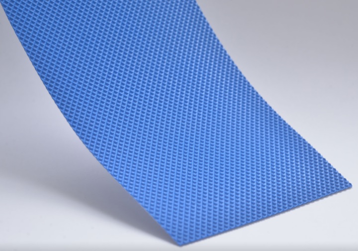 Gıda konveyör Bantları Beyaz Mavi Yeşil olabilir ancak en çok tercih edilen yabancı madde ayırımı açısındam mavi renkli olanlardır. Gofret desen mavi poliüretan konveyör bantlar açılı konveyörlerde kullanılır.