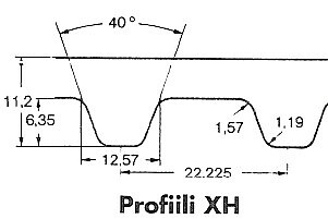 XH zaman kayışı, endüstriyel ve ağır uygulamalarda yüksek tork iletimi ve güç aktarımı için kullanılan bir zamanlama kayışı türüdür. XH, zaman kayışının diş aralığını (hatve) belirten bir kod olup, diş aralığı 22.225 mm’dir.
